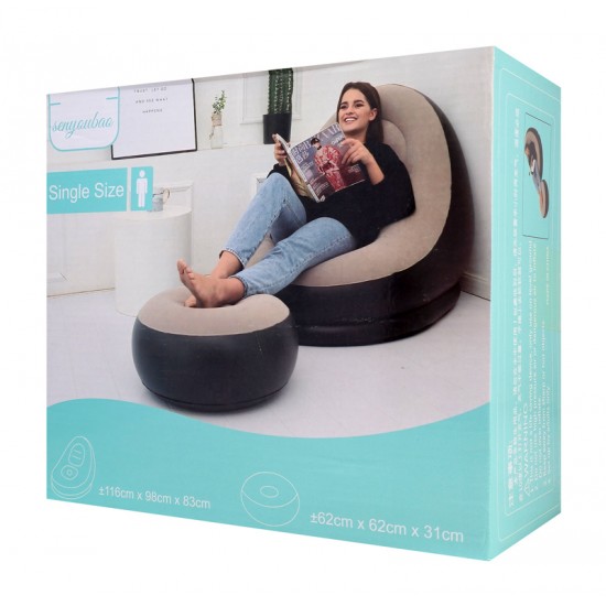 Χαλαρώστε με άνεση και στυλ, με το σετ φουσκωτού καναπέ και σκαμπό της HOME USE. Ο εργονομικός σχεδιασμός του καναπέ προσφέρει άνετη στήριξη στο σώμα ενώ το σκαμπό σας επιτρέπει να ξεκουράζετε τα πόδια ή να το χρησιμοποιείτε σαν βοηθητικό κάθισμα.