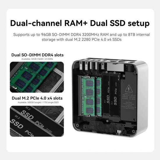 -Αναβάθμιση σκληρού δίσκου: 2x M.2 2280 PCle4.0 X4 SSD slots, Max 4TB