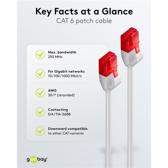 Τα καλώδια δικτύου της Goobay κατασκευάζονται από ποιοτικά υλικά, με τις υψηλότερες τεχνικές προδιαγραφές, προσφέροντας αξιόπιστη λειτουργία υψηλής απόδοσης, με αντοχή στον χρόνο.