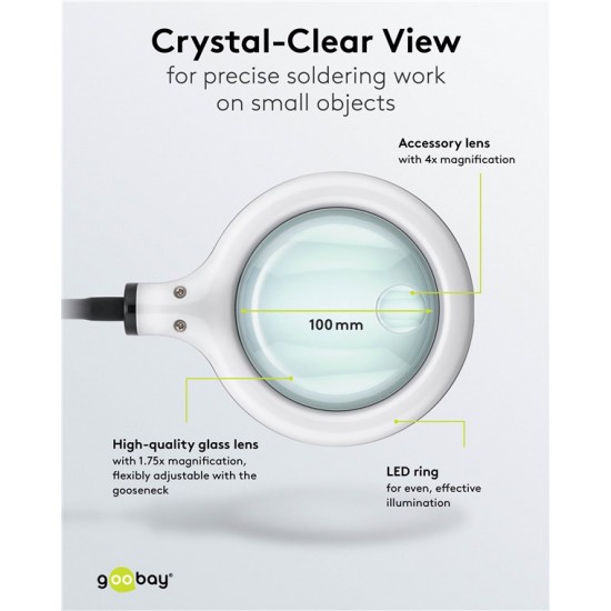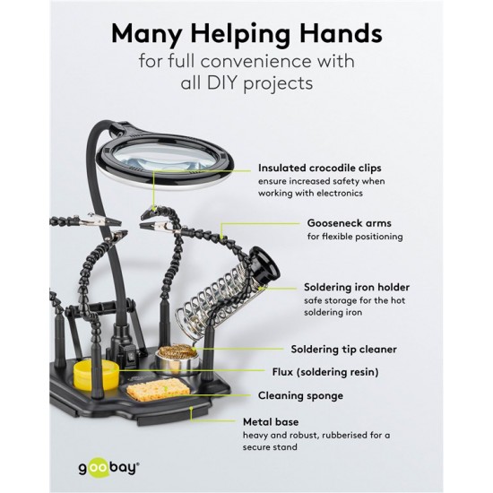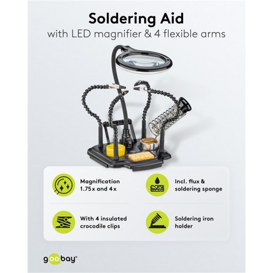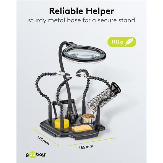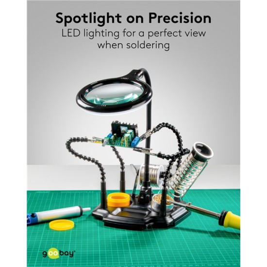GOOBAY βάση στήριξης πλακέτας 76558 με μεγεθυντικό φακό & θέση για κολλητήρι, 4x βραχίονες, μαύρη