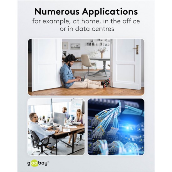 Τα καλώδια δικτύου της Goobay κατασκευάζονται από ποιοτικά υλικά, με τις υψηλότερες τεχνικές προδιαγραφές, προσφέροντας αξιόπιστη λειτουργία υψηλής απόδοσης, με αντοχή στον χρόνο.