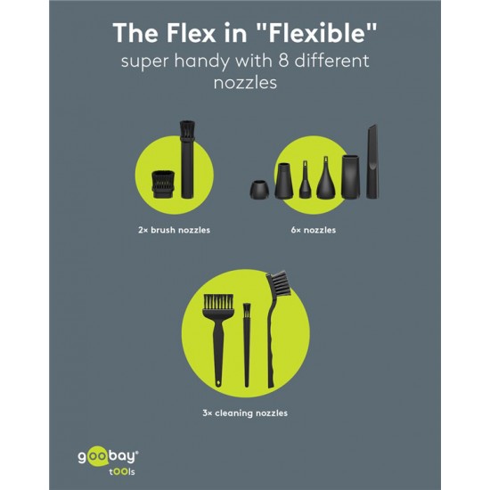 Ηλεκτρικό air duster της Goobay, κατάλληλο για την απομάκρυνση της σκόνης από αξεσουάρ και οικιακά αντικείμενα όπως πληκτρολόγια, PC cases, κλιματιστικά, ηλεκτρονικές συσκευές κ.α.