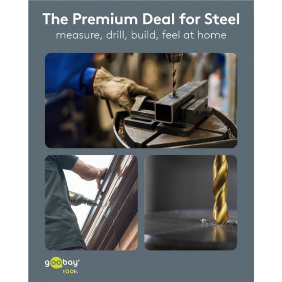 Σετ τρυπάνια της Goobay που αποτελείται από 15 τρυπάνια σε διαφορετικά μεγέθη, κατάλληλα για χρήση σε μεταλλικές επιφάνειες.