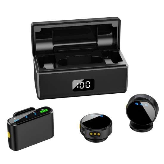 UPTECH ασύρματα μικρόφωνα UPW-M9MAX με θήκη φόρτισης, USB-C, 2.4GHz, μαύρο
