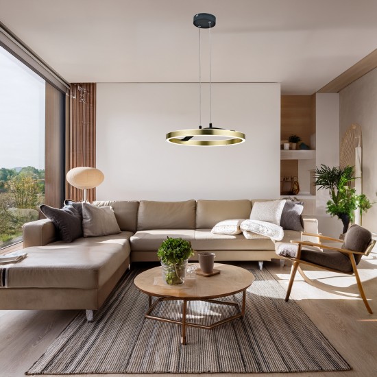 POWERTECH LED φωτιστικό οροφής HLL-0201, 29W, 4000K, Φ38x120cm, χρυσό/μαύρο