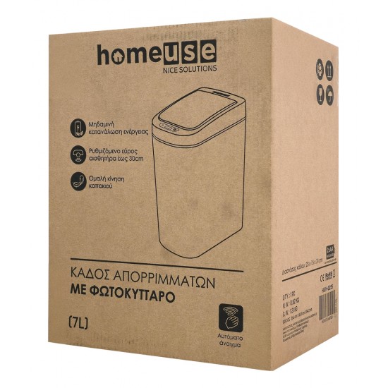 HOME USE κάδος απορριμμάτων HUH-0255 με φωτοκύτταρο, 7lt, λευκός
