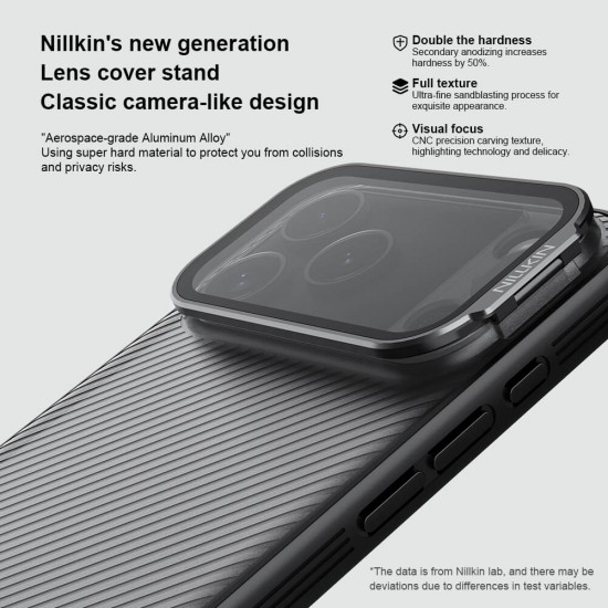 Η θήκη της σειράς CamShield Prop της Nillkin χαρακτηρίζεται από την ενισχυμένη προστασία που προσφέρει, το σκληρό υλικό κατασκευής της με την ανάγλυφη επιφάνεια, αλλά και την έξτρα προστασία των καμερών και της ιδιωτικότητας σας, χάρη στο ανοιγόμενο μεταλλικό καπάκι καμερών, το οποίο μπορεί να χρησιμοποιηθεί και ως stand.