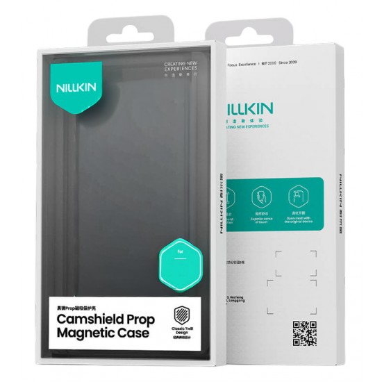 Η θήκη της σειράς CamShield Prop Magnetic της Nillkin χαρακτηρίζεται από την ενισχυμένη προστασία που προσφέρει, το σκληρό υλικό κατασκευής της με την ανάγλυφη επιφάνεια, αλλά και την έξτρα προστασία των καμερών και της ιδιωτικότητας σας, χάρη στο ανοιγόμενο μεταλλικό καπάκι καμερών, το οποίο μπορεί να χρησιμοποιηθεί και ως stand.