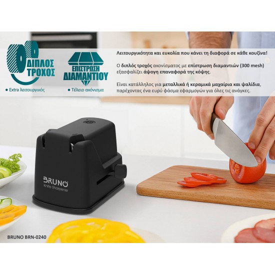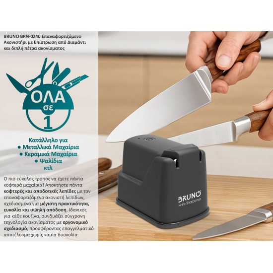 BRUNO BRN-0240 επαναφορτιζόμενο ακονιστήρι με επίστρωση από διαμάντι και διπλή πέτρα ακονίσματος