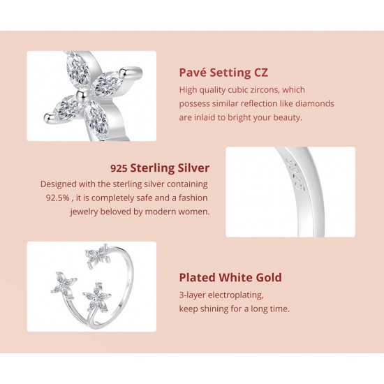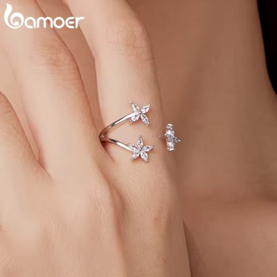 Κομψό δαχτυλίδι Bamoer, κατασκευασμένο από ασήμι 925 και διακοσμημένο με αστραφτερή κυβική ζιρκόνια.