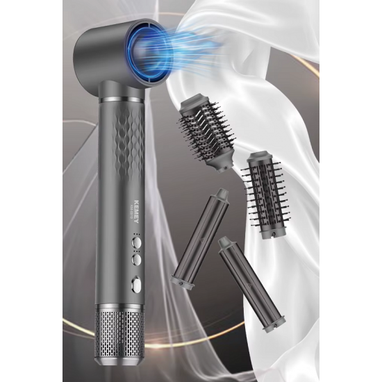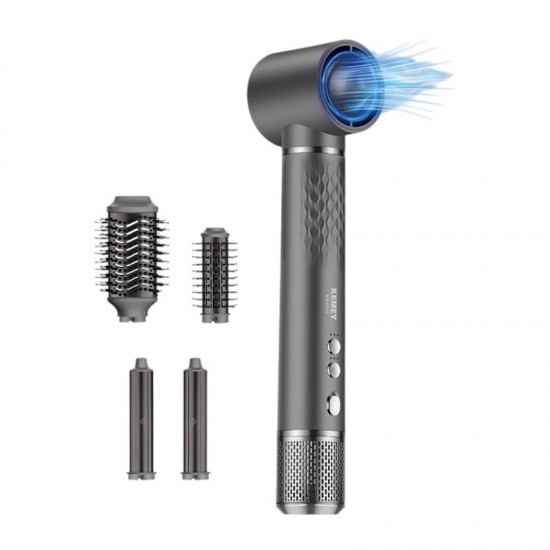 Ηλεκτρική βούρτσα μαλλιών της Kemei 5 σε 1, που στεγνώνει, φορμάρει, ισιώνει και δημιουργεί ελαφριές μπούκλες στα μαλλιά σας σε ελάχιστο χρόνο με τη δύναμη του αέρα και με την τεχνολογία αρνητικών ιόντων, προστατεύοντάς τα από τη φθορά της θερμότητας, αφήνοντας ένα λείο, λαμπερό αποτέλεσμα.