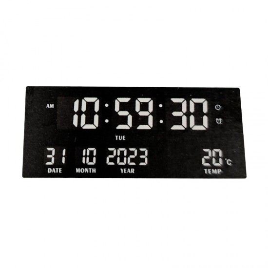 Ψηφιακό ρολόι τοίχου υψηλής ανάλυσης και φωτεινότητας με ένδειξη ημερομηνίας, ώρας και θερμοκρασίας δωματίου, κατάλληλο για οικιακή και επαγγελματική χρήση όπως μαγαζιά, βιτρίνες κ.α.