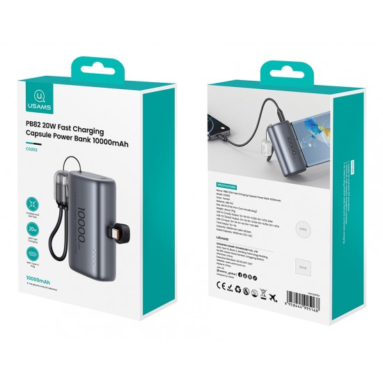 USAMS power bank CD252 με stand, 2x θύρες εξόδου, 10000mAh, 20W, γκρι