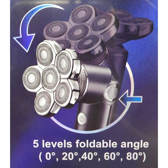 Επαναφορτιζόμενη ξυριστική μηχανή της Kemei με εργονομικό σχεδιασμό και 5 λεπίδες που προσαρμόζονται στις καμπύλες του προσώπου, για βαθύ ξύρισμα και μέγιστο αποτέλεσμα χωρίς ερεθισμούς.
