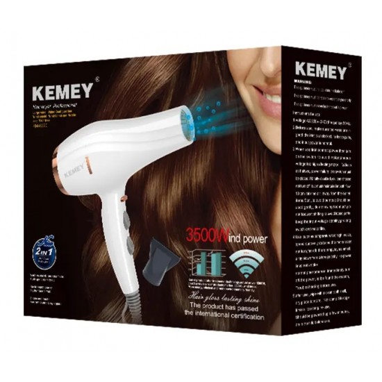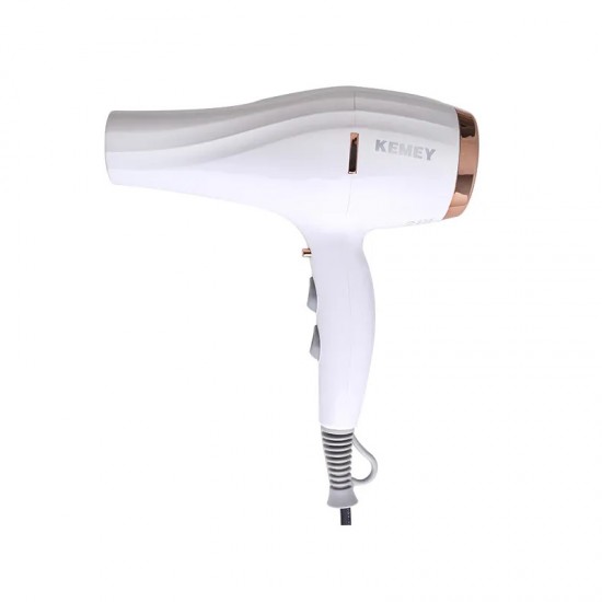 Πιστολάκι μαλλιών της Kemei, υψηλής ισχύος, με δυνατή ροή αέρα για γρήγορο στέγνωμα και φορμάρισμα των μαλλιών. Παρέχει λειτουργία ιονισμού, μια τεχνολογία που βοηθάει στο να μην ηλεκτρίζονται τα μαλλιά, προσφέρει περισσότερο όγκο και δεν επιτρέπει το φριζάρισμά τους.