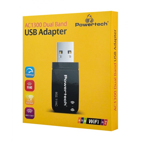 POWERTECH ασύρματος USB αντάπτορας δικτύου PT-1450, 1300Mbps dual band WiFi