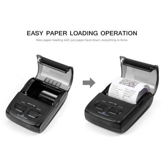 Φορητός θερμικός εκτυπωτής αποδείξεων, συμβατός με λειτουργικά συστήματα Windows, Linux, Android και iOS. Υποστηρίζει συνδεσιμότητα μέσω USB και Bluetooth. Τροφοδοτείται από ενσωματωμένη επαναφορτιζόμενη μπαταρία χωρητικότητας 1500mAh.