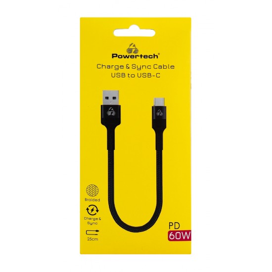 POWERTECH καλώδιο USB-C σε USB PTR-0166, 60W, 480Mbps, 25cm, μαύρο