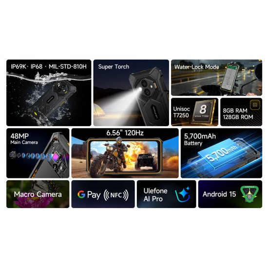 ULEFONE smartphone RugKing 3 Pro, 6.56", 8/128GB, 5700mAh, IP68/IP69K, μαύρο