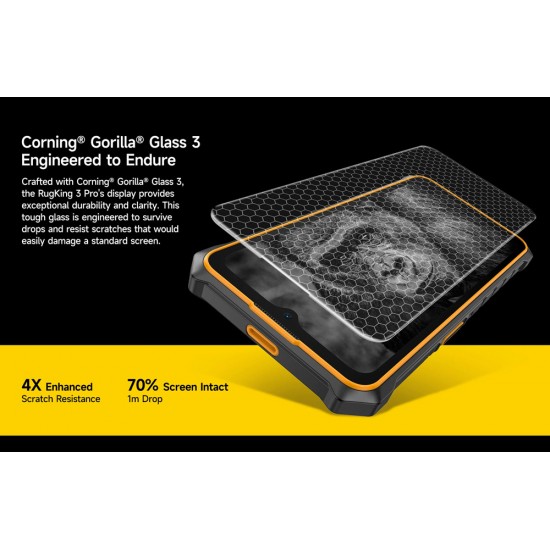 Με πιστοποίηση IP68/IP69K και πρότυπο MIL-STD-810H, το RugKing 3 Pro είναι σχεδιασμένο για να αντέχει σε ακραίες συνθήκες χρήσης και περιβάλλοντα.