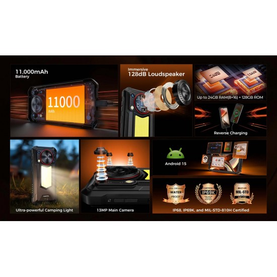 OUKITEL smartphone WP53 με ηχείο 3W, 6.52", 8/128GB, 11000mAh, IP68/IP69K/MIL-STD-810H, μαύρο