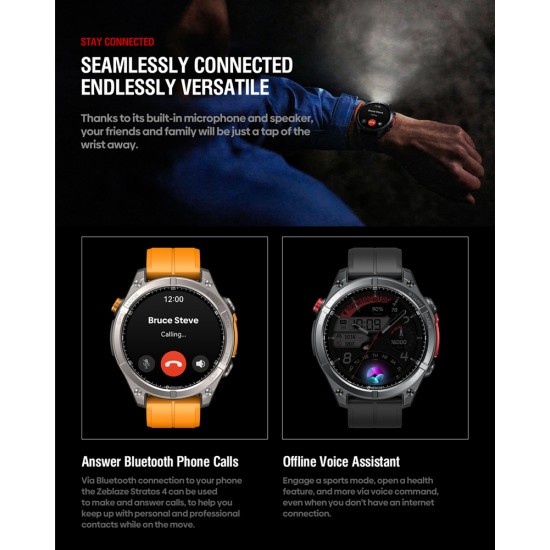 ZEBLAZE smartwatch Stratos 4 με φακό, heart rate, 1.43" AMOLED, GPS, 5 ΑΤΜ, MIL-STD-810H, μαύρο