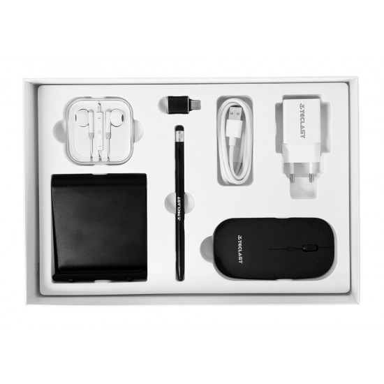 Στη συσκευασία συμπεριλαμβάνονται θήκη τύπου flip, πληκτρολόγιο, ασύρματο ποντίκι, στυλό αφής, βάση και ακουστικά, προσφέροντας έτοιμη λύση για εργασία και ψυχαγωγία.