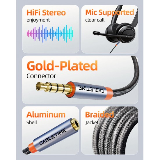 Καλώδιο 3.5mm αρσενικό σε θηλυκό της Cabletime ιδανικό για την προέκταση συνδέσεων μεταξύ υπολογιστών, smartphone, ακουστικών, ηχείων και άλλων συσκευών ήχου.
