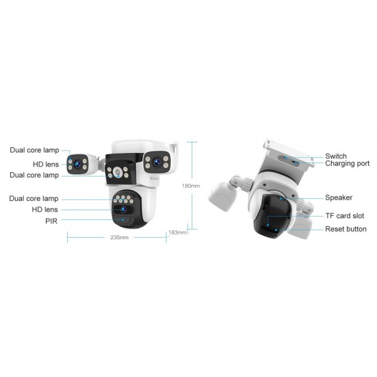 Ενσωματώνει 3 φακούς που επιτρέπουν μεγαλύτερη κάλυψη στον χώρο και υποστηρίζει PTZ λειτουργία που σας επιτρέπει την οριζόντια και κάθετη μετακίνηση της κάμερας μέσω της εφαρμογής.