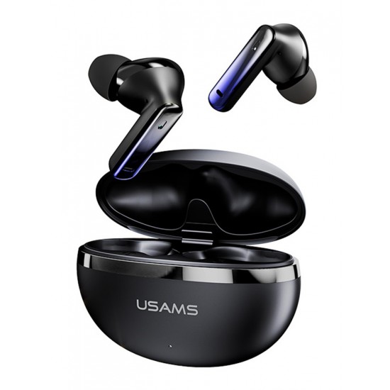 USAMS earphones με θήκη φόρτισης E02, TWS, ANC & ENC, Φ10mm, 35/300mAh, μαύρα
